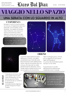 L’esperienza della classe 1As durante una visita al centro astronomico di Arson, dove gli studenti hanno osservato da vicino costellazioni, pianeti e la Luna, guidati da esperti. Attraverso spiegazioni scientifiche e testimonianze, emerge un’attività educativa coinvolgente che ha unito scoperta, emozione e riflessione sul nostro posto nell’Universo.